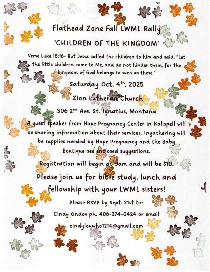 Flathead Rally will be October 4, 2025, in St. Ignatius at Zion Lutheran Church